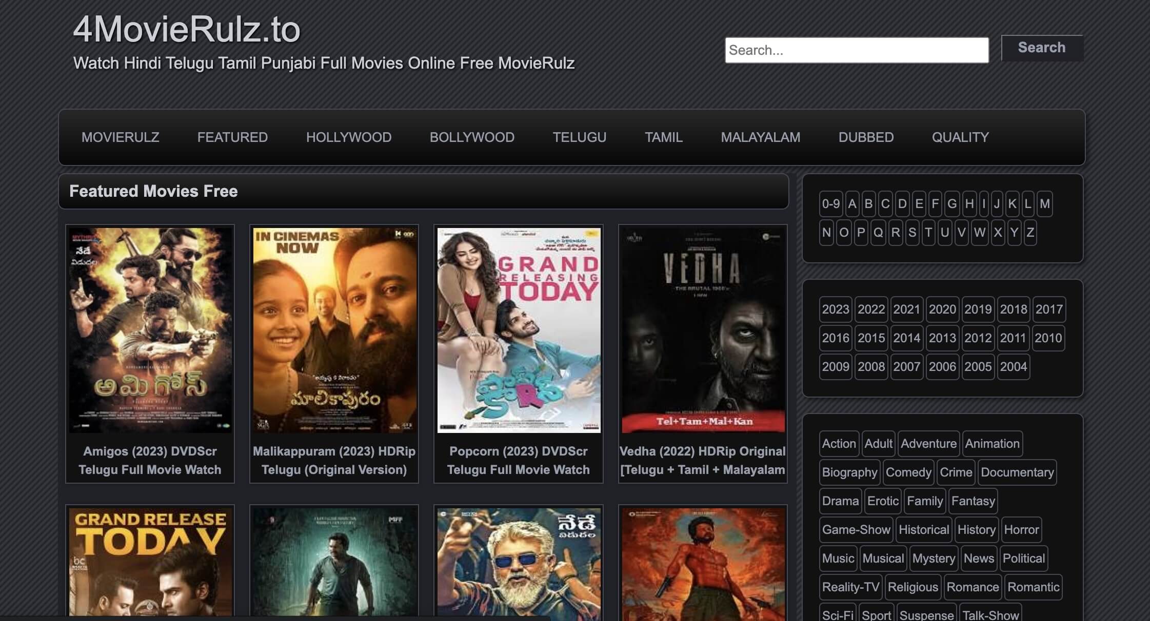 4Movierulz is a free streaming site that provides HD movies in various languages such as English, Hindi, Telugu, Tamil, Punjabi, and more. The site generally arranges movies based on languages and years. However, the 4Movierulz Kannada movie doesn’t seem to be available. You can search for a specific title on the front page or use the genre filter to locate certain genre movies. In addition, 4Movierulz has a number of TV shows and Asian dramas available.