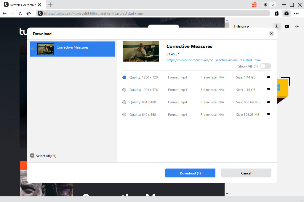 There will pop out a “Download” interface that provides all available video download options in different video quality, resolution, format, size, and frame rate. Choose the one you want to download and then click the “Download” button. This JDownloader alternative would start to download online videos instantly.