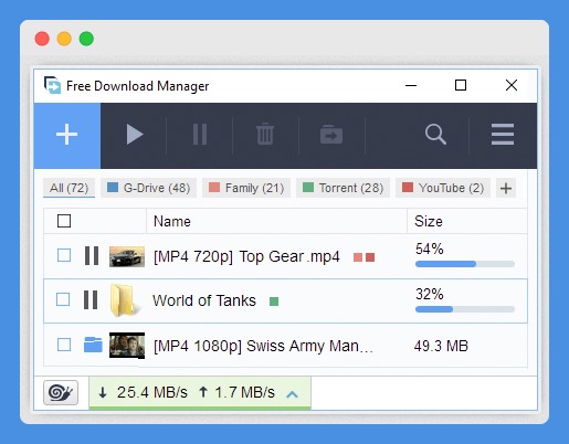 Free Download Manager (FDM) is another good alternative to JDownloader that’s packed with tools including but not limited to web-based remote control, bandwidth monitoring, and one-click torrenting, for music and movie lovers. It offers services such as audio and video previews, download accelerator, traffic management, and BitTorrent client for downloading your favorite movies or music. The free, open-source download manager has features like download scheduling, a remote control that lets you leave your downloads running and you can also monitor from any inter-connected device.