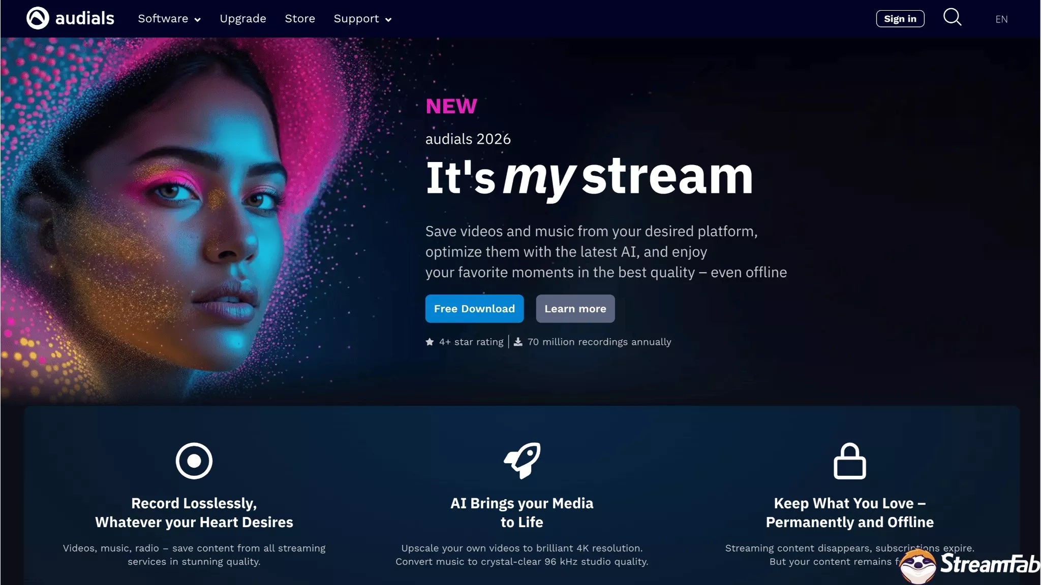 Audials One uses advanced technology to ensure high-quality output files when recording audio and video. Furthermore, Audials One maintains high-quality output when converting audio and video files. Therefore, Audials One provides a superior audio-visual experience.