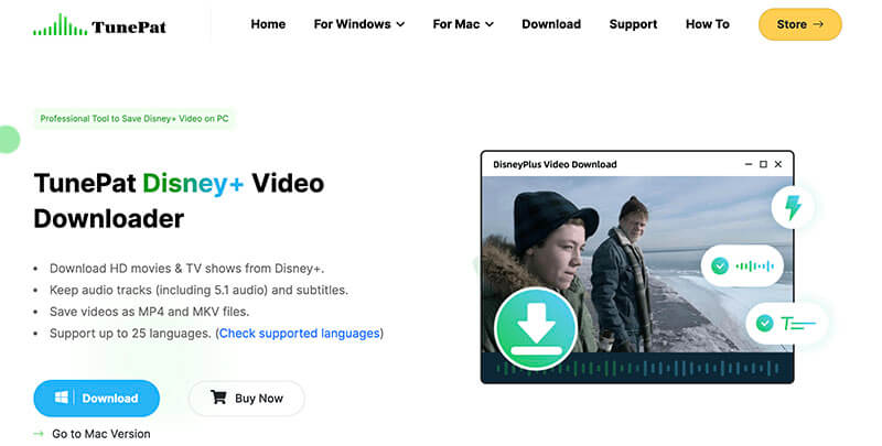 TunePat is a reliable Disney Plus downloader to save your favorite TV shows for offline playback. You can download Disney+ episodes in batches with audio tracks and subtitles preserved. The downloader allows you to download videos to MP4/MKV in H.264 or H.265 video codec, which is a big plus. Supporting 25+ languages, the downloader is easy to use for everyone.