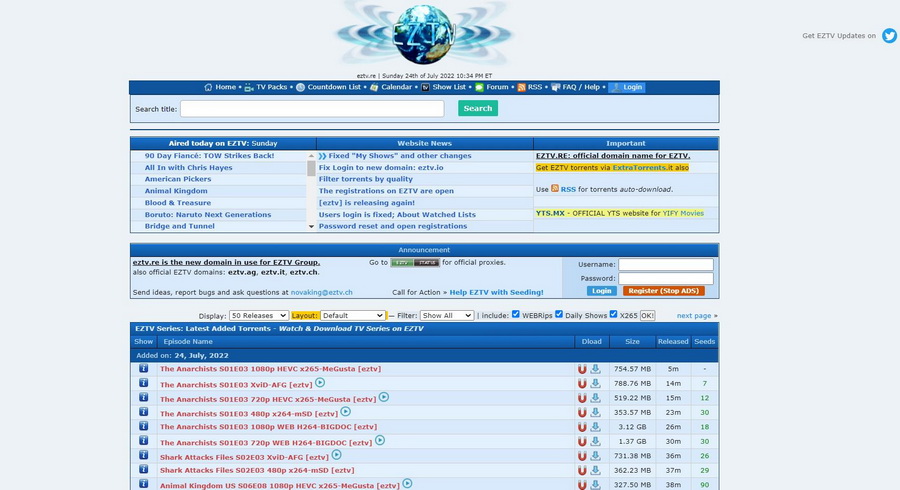 EZTV is one of the oldest torrent sites for movies and TV shows in existence and it is still fully functional right now as an excellent torrent site mainly focusing on TV shows. The content library of this torrent site is simply overwhelming, which help you find high-definition and must-watched episodes of your favorite shows. It keeps updating so that you can watch and download the latest TV shows as well.