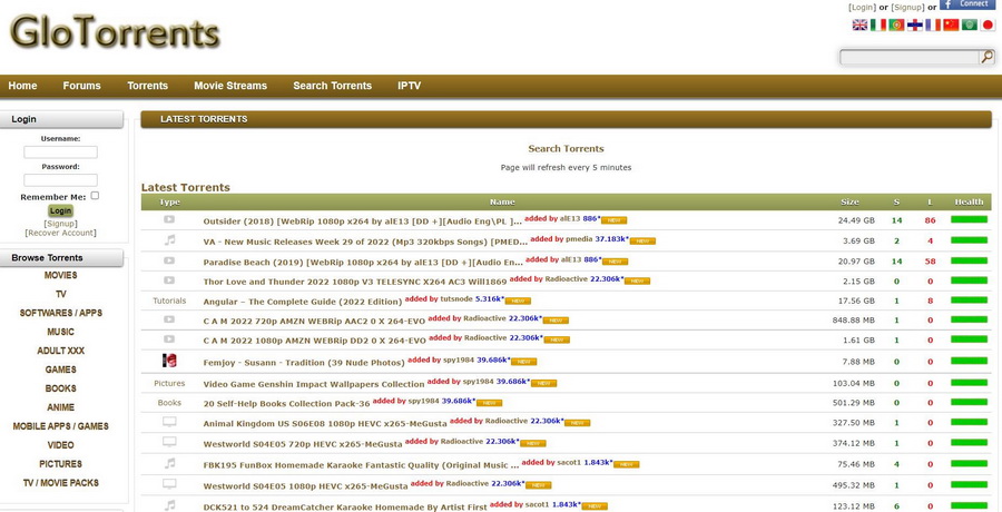 With a database containing torrents of all kinds, Glo Torrents is one of the best free torrent sites for movies and TV shows. There are a number of movie torrents in over 14 different languages. Besides, dubs and dual audio movies are also available on this site. It also has a forum where you can request movies or TV shows torrents and even subtitles you wanted. Anyway, it’s a go-to place to go when you want to download any must-watched movie or TV shows.