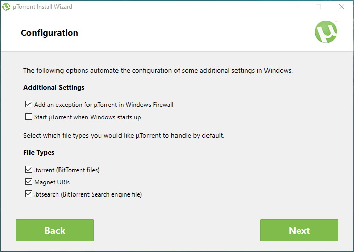 Go to the official site and download uTorrent. And then install uTorrent on your computer by following the on-screen instructions. Remember to tick the boxes as follows when the Configuration screen appears and then click Next to finish the installation.