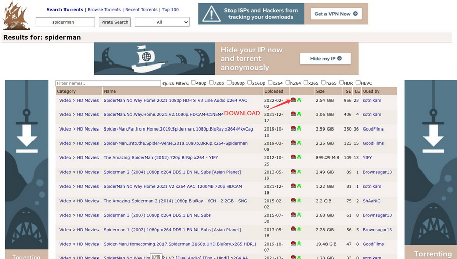What is worth mentioning is that The Pirate Bay is one of the best torrent sites for movies and TV shows. Founded in 2003, The Pirate Bay is one of the longest-standing P2P sites of its kind. It allows you to search, download, and contribute magnet links and torrent files. It is available in 35 languages, primarily English and Swedish. On this site, you can directly download movies up to 4K of all genres.
