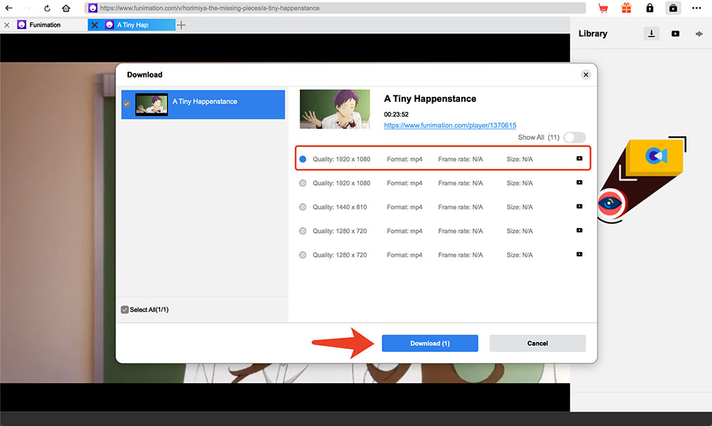 Choose a preferred quality and format. Click on the “Download” button to download videos from Funimation.