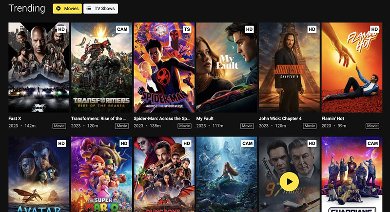 With a huge collection of movies and TV shows, 1Movies is one of the sites like Himovies. You can even find fresh titles like The Super Mario Bros., John Wick: Chapter 4, etc. here, and stream them with up to 2 servers and 1080p resolution. Moreover, 1Movies lets you download videos for free.