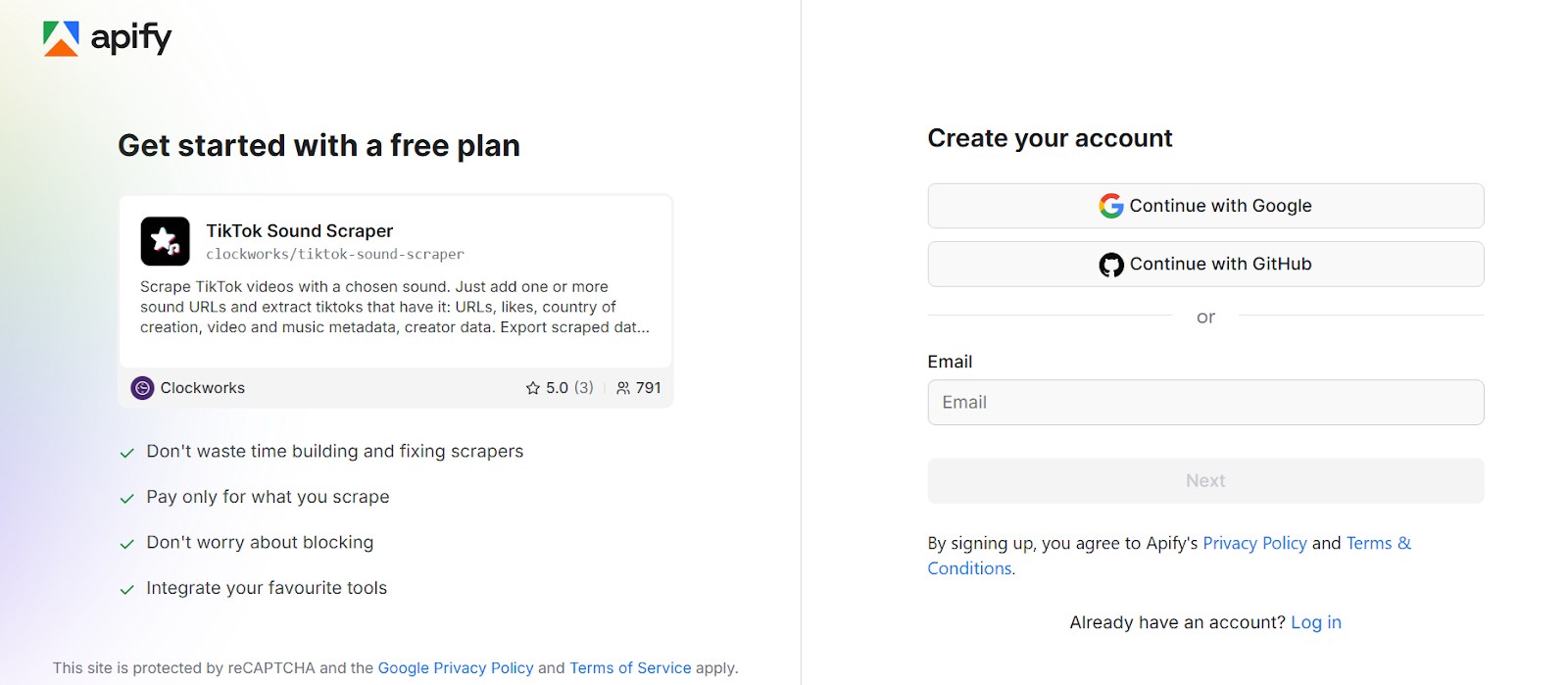 Step 1: Create a free Apify account using your email.