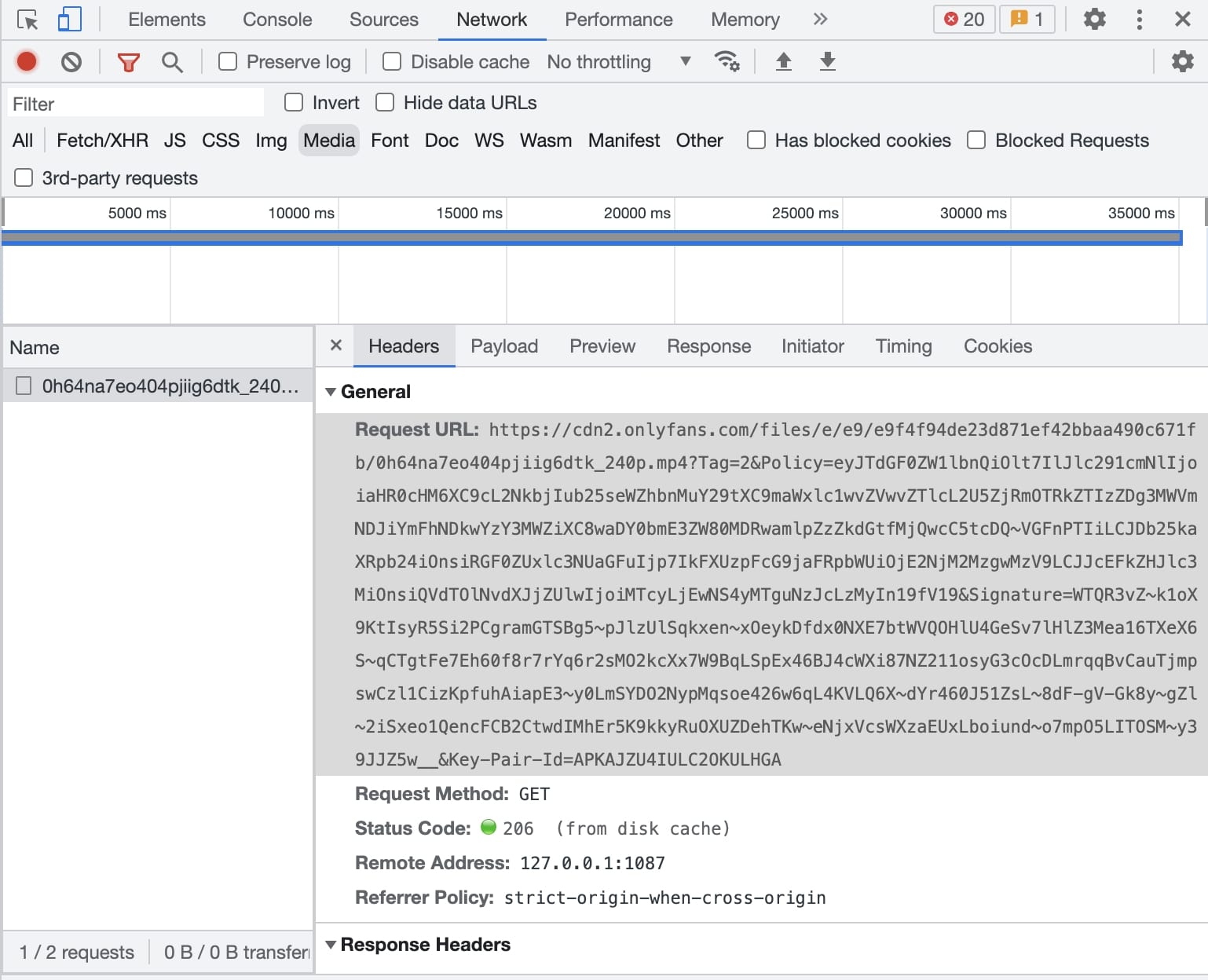 Step 3: Press F5 Key and look for an MP4 or media file and you can find the URL of the video.
