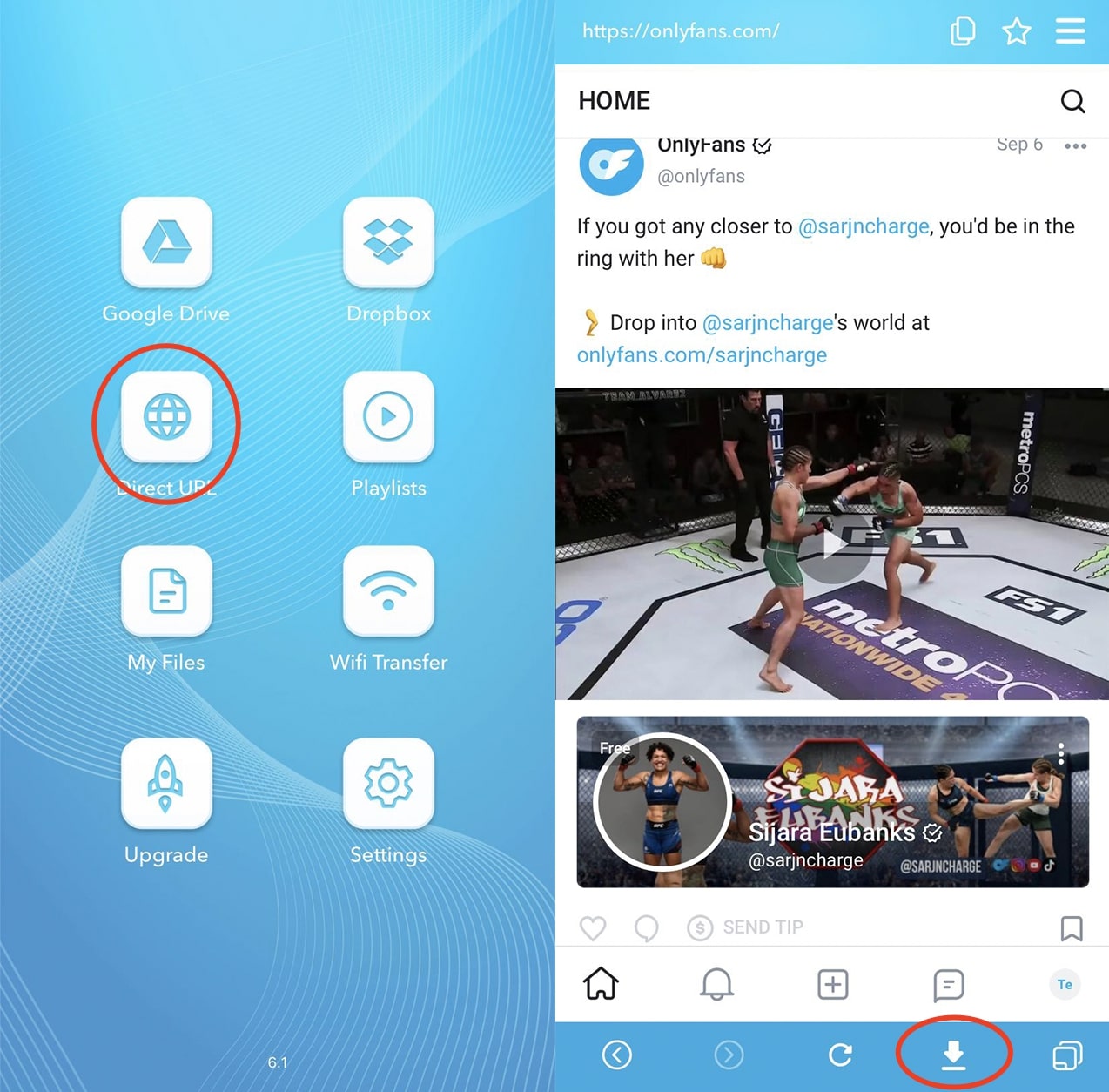 Step 2: Open the app and choose the “Direct URL” option. Visit Onlyfan’s official website.