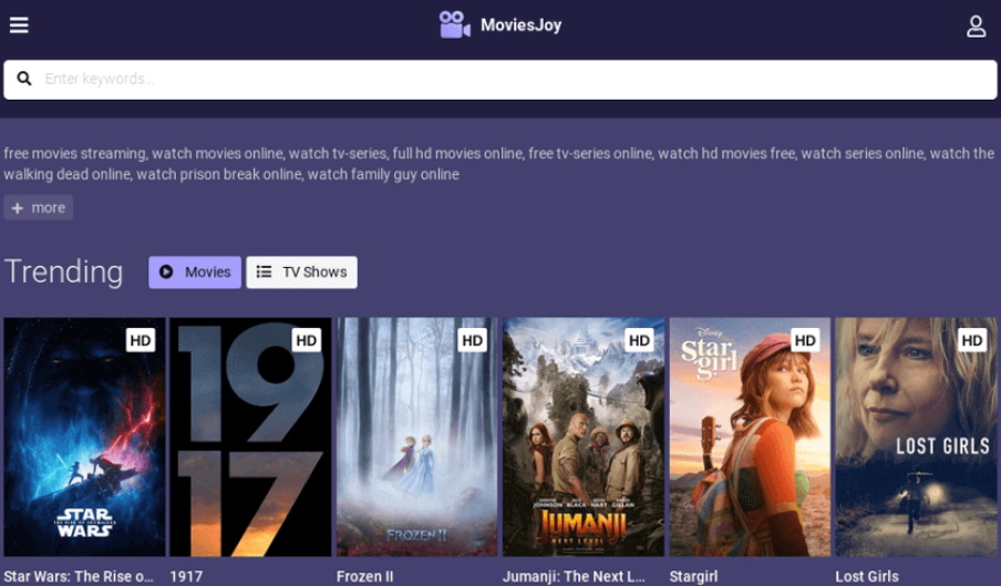 MoviesJoy allows you to watch movies and sitcoms online for free without any intrusive ads, which features a nice UI with a homepage that contains a list of movies and TV series grouped according to when they were added, the recent TV show episode, the latest movies, and upcoming movies for the year.