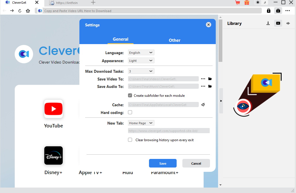 Before you try to download sitcoms online with CleverGet, you can decide output directory at will. Kick off CleverGet on your computer after the installation, click the three-dot icon on its top-right corner, and then open the “Settings” option to pop up detailed settings panel. After you have completed all the settings, click the “Save” button.