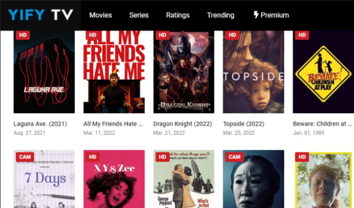 Yify TV (Ymovies) is another free movie streaming website hosted by the popular movie torrent boss, YTS. It has a robust search feature that employs a range of filters coupled with several genre options and the choice of viewing movies in a list or grid format.