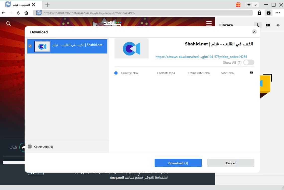 On the “Download” popup window, you could see the download options in various resolutions, formats, bit rates, sizes, etc. Choose the Arabic movie video file you want to download and click the blue “Download” button to start downloading videos from the website.