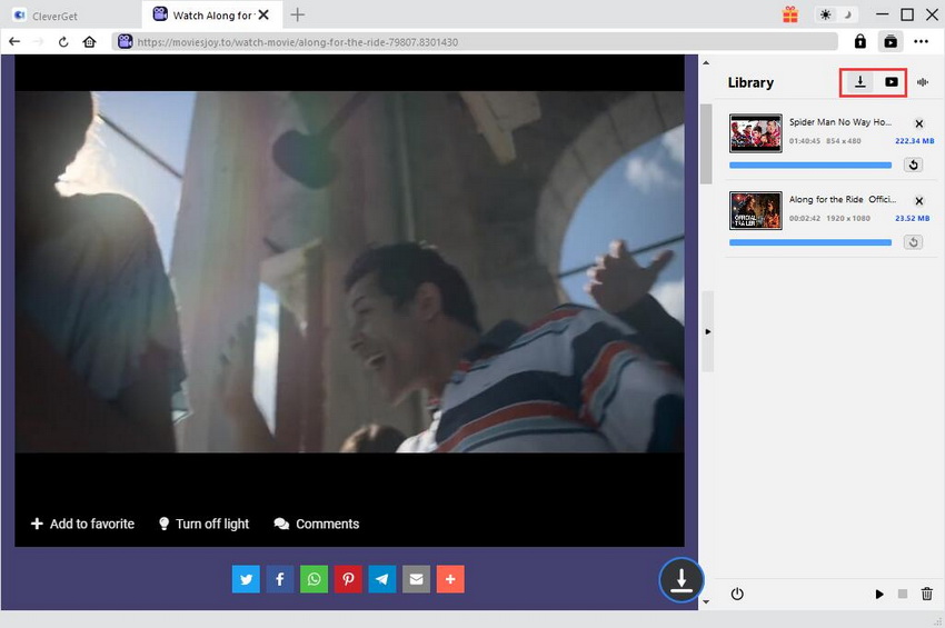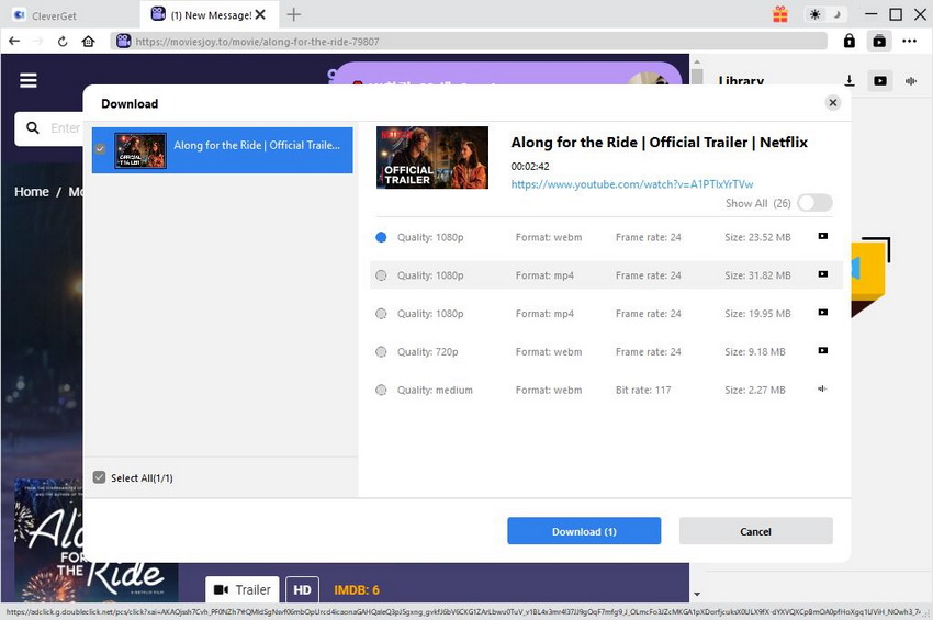 Once the Hollywood Movie is played in the program, CleverGet will automatically and instantly detect all the downloadable sources of the movie and list them on the popup panel. Now you can choose an option in your preferred quality and format, then click on the “Download” button to download Hollywood movies free.