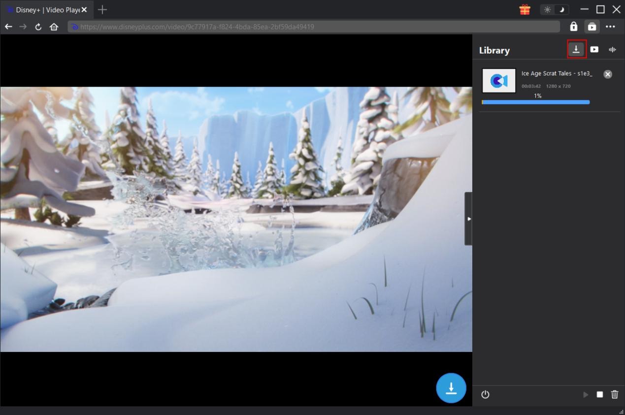 Once you have logged into Disney+, search and locate the target movie or TV show you want to download. Click to play it back. Or, you could directly copy and paste the Disney+ title URL into the address bar for locating target video. Once you have started playing target video, click the round Download icon at the bottom right corner to let CleverGet Disney+ Downloader start parsing target Disney+ title URL.