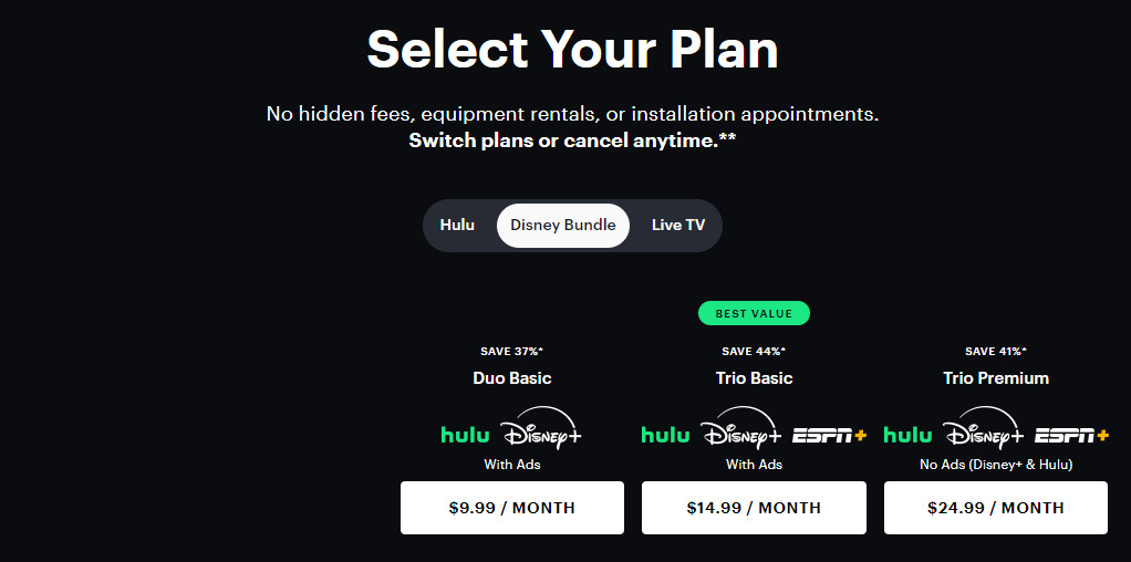 While you would like to become a Hulu subscriber, you could choose to become a Hulu bundle plan, which could be a little bit more expensive but will offer more movies and shows for you to stream. Currently, you could get Hulu + Disney+ bundles, Hulu + Disney+ + ESPN+, Hulu + Live TV bundles according to your own willing. This will allow you to watch and stream movies and shows, and even Live TV channels on more streaming services.