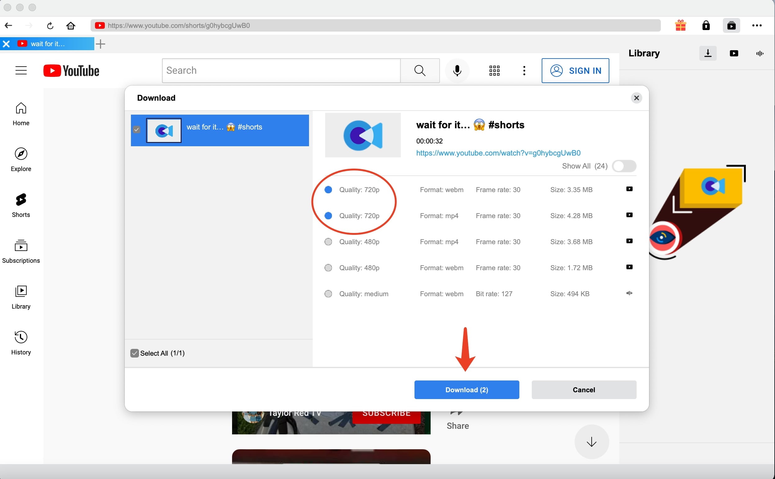 Choose a preferred quality and format. Click on the “Download” button to download YouTube Shorts videos.