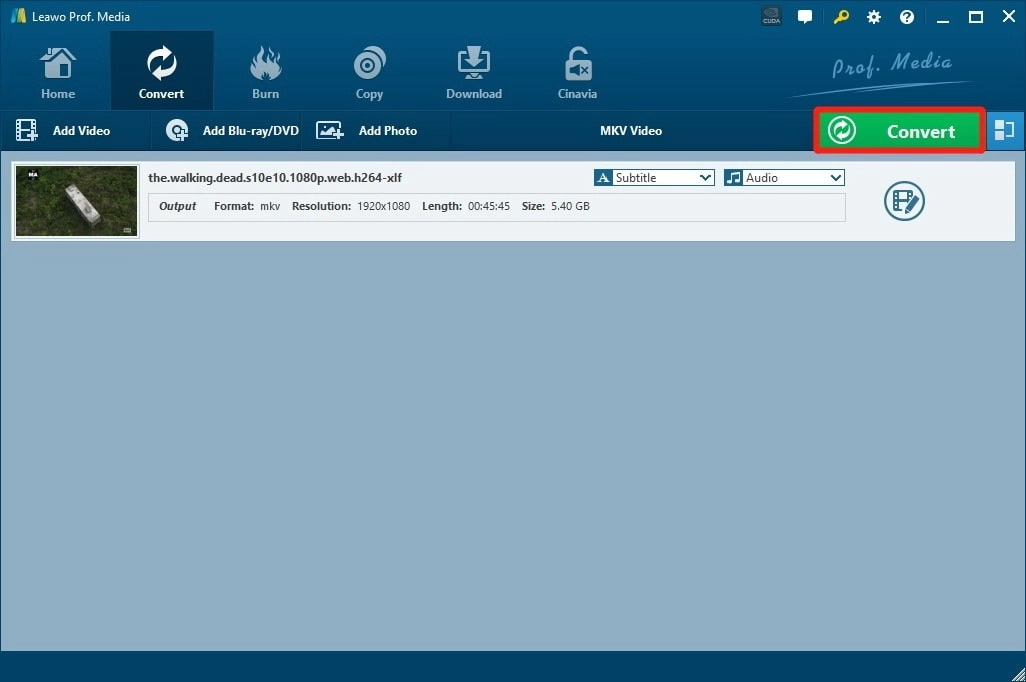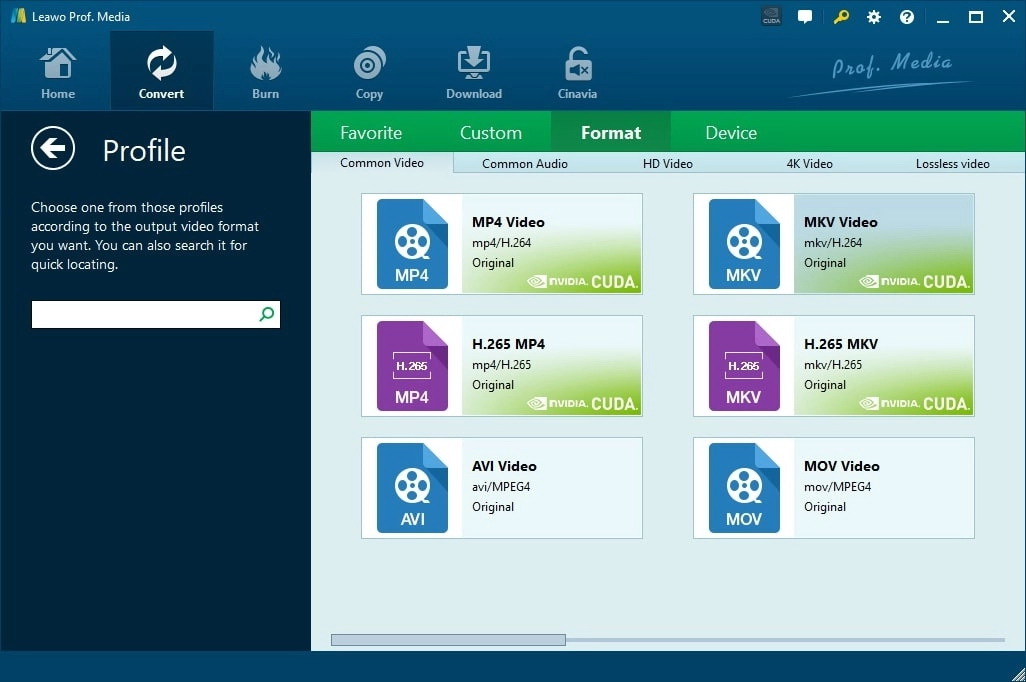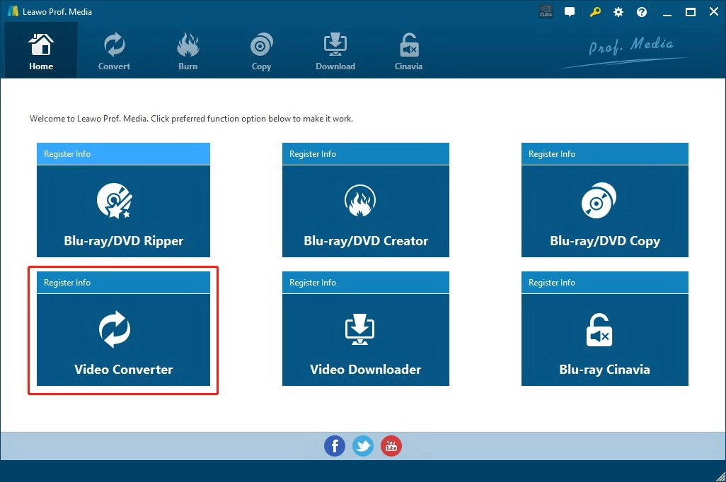 Leawo Video Converter is a module of Leawo Prof. Media. Click the “Video Converter” on the main screen or the Convert tab on top to enter the video converter module.