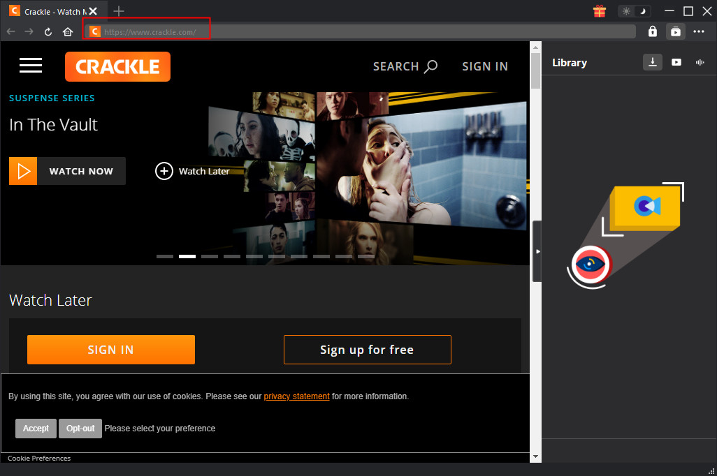 On CleverGet home page, click the Crackle icon to open the crackle.com within CleverGet. Then, choose target video to play back and let CleverGet analyze your Crackle video URL. Or, you could directly copy and paste the Crackle movie or TV show URL into the address bar and then press the “Enter” key on your keyboard. Once you have entered the movie URL, CleverGet will automatically analyze it. CleverGet enables you to sign in or even sign up Crackle easily.