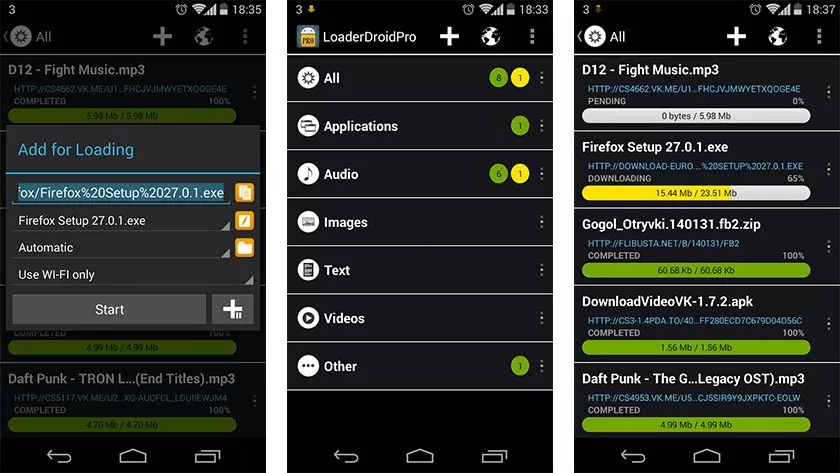 1DM (formerly IDM) is another popular Android download manager. It works like most other download managers, except this one has direct torrent support as well. That makes it a good option for people who use torrents (legally, of course). It also supports five simultaneous downloads, the ability to speed up download speeds, and more. It also blocks third-party trackers and includes a built-in browser. The pro version runs for a very reasonable $1.99.