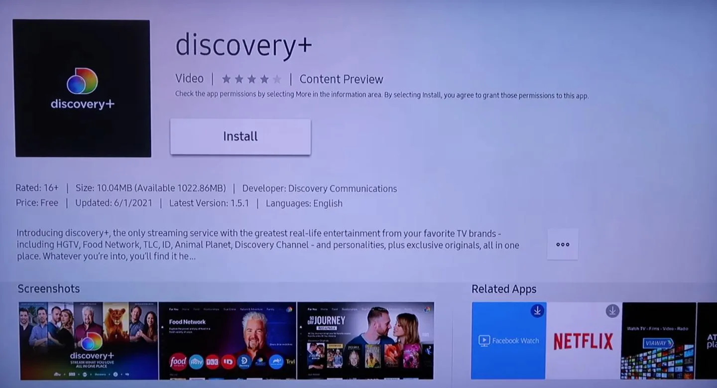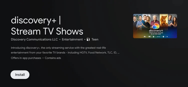 Step 3: Specify the Discovery Plus app and click on the “Install” button to install it on your Philips Android TV.