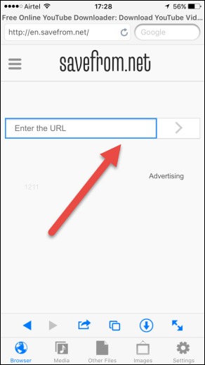 2.Tap the Browser tap in the app and go to online tools like savefrom.net.
