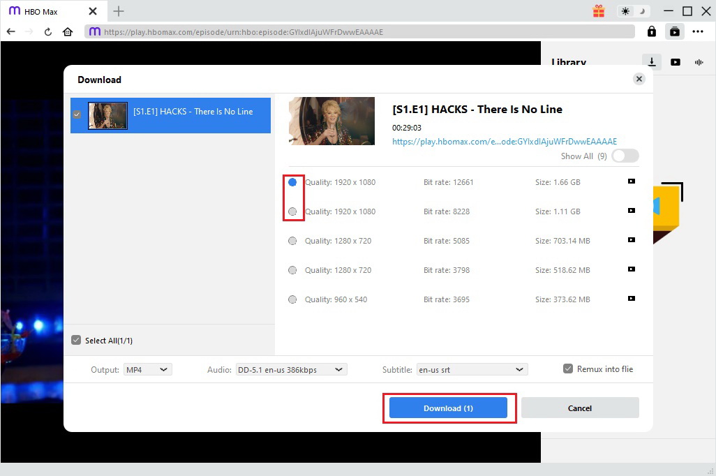 Choose your preferred quality and format. Click on the “Download” button to download videos from HBO Max.