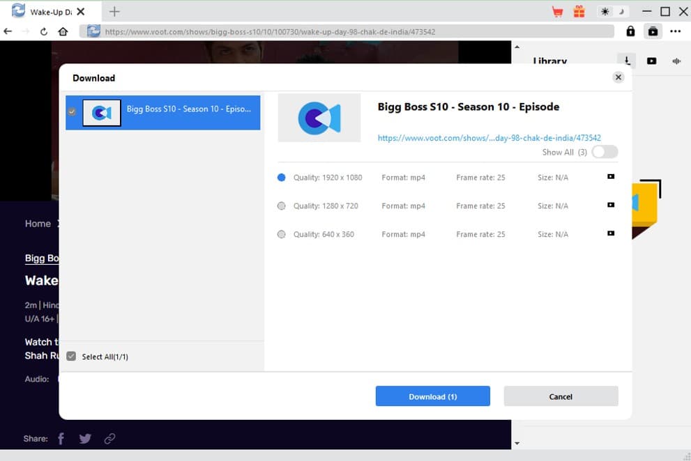 Once you open the page of the Hindi movie, CleverGet will parse the video URL and pop up a Download panel. All available download options will be listed there along with different quality, formats, frame rates and sizes. Choose one or more options you want to download, click “Download” button to start downloading the target Hindi movie.