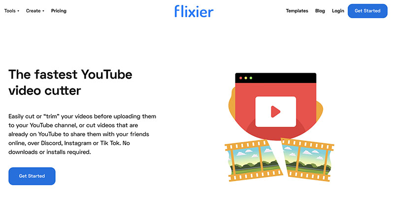 Flixier is a feature-rich video platform that offers a handful of video editing tools for free. You can use its YouTube video cutter to clip YouTube video files online easily. The video cutter allows you to cut videos by uploading them as well. After you are satisfied with the editing, you can share it directly over up to 7 social media platforms such as Discord, Instagram, TikTok, and more.