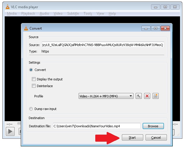 Step 2: Paste the .m3u8 link into VLC and switch the “Play” button at the bottom to “Convert” button. Then, click it. In the window of “Convert”, set the format of the output file to MP4 and the save path of the output file. Finally, click the “Start” button to command VLC to start downloading M3U8 video to MP4.