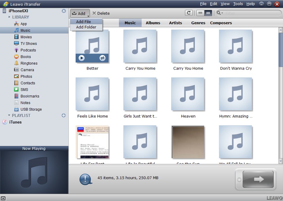 After you download music from YouTube to your computer via CleverGet or Leawo Music Recorder, you can continue to use Leawo iTransfer to finish the task of transferring music to iPhone at once. It can cope with various files transfer tasks among iDevices, iTunes and computers with ease. Now let’s begin to check how to use this tool complete the transfer task from computer to iPhone.