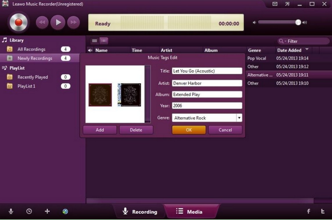 In “Media > Library” tab, you can view all your recordings. Choose a recorded YouTube music file and right-click to choose “Edit Music Tags” option. In the pop-up windows, you can manually edit music tags.