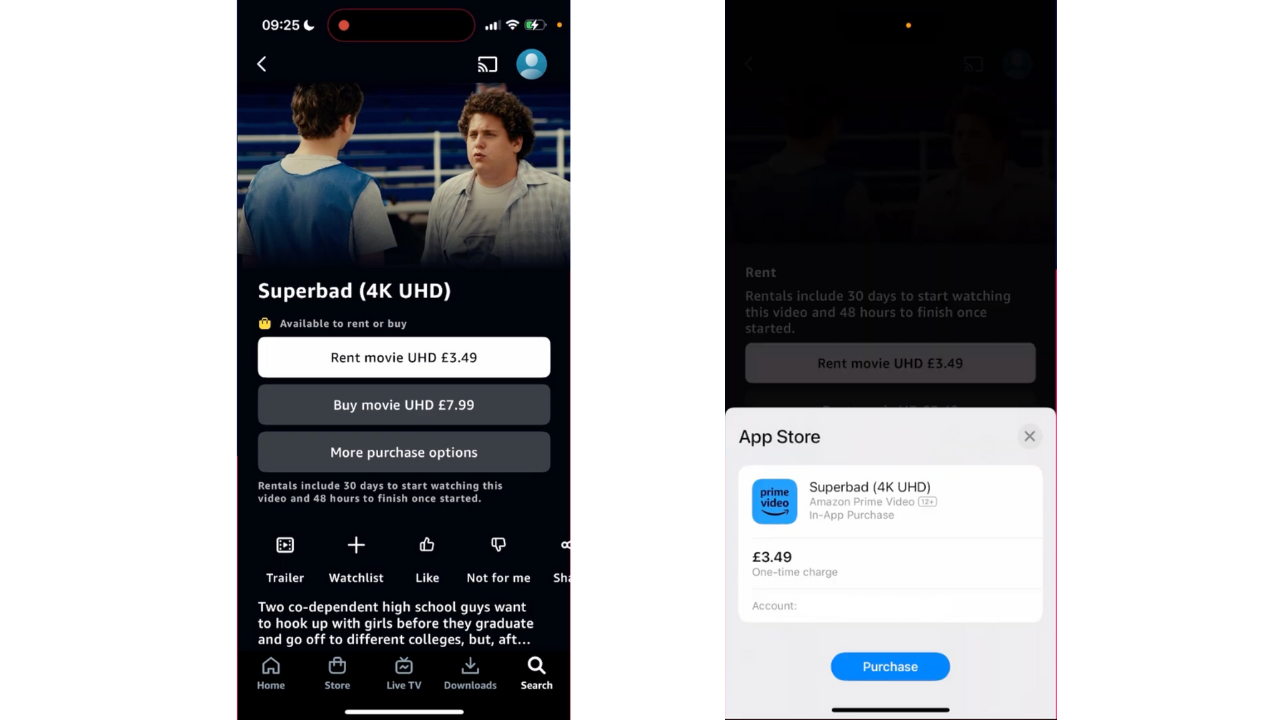 Step 2: On the detail page of the title, there are purchase options like Rent and Buy with prices listed. Tap ‘Rent’ and finish the payment.