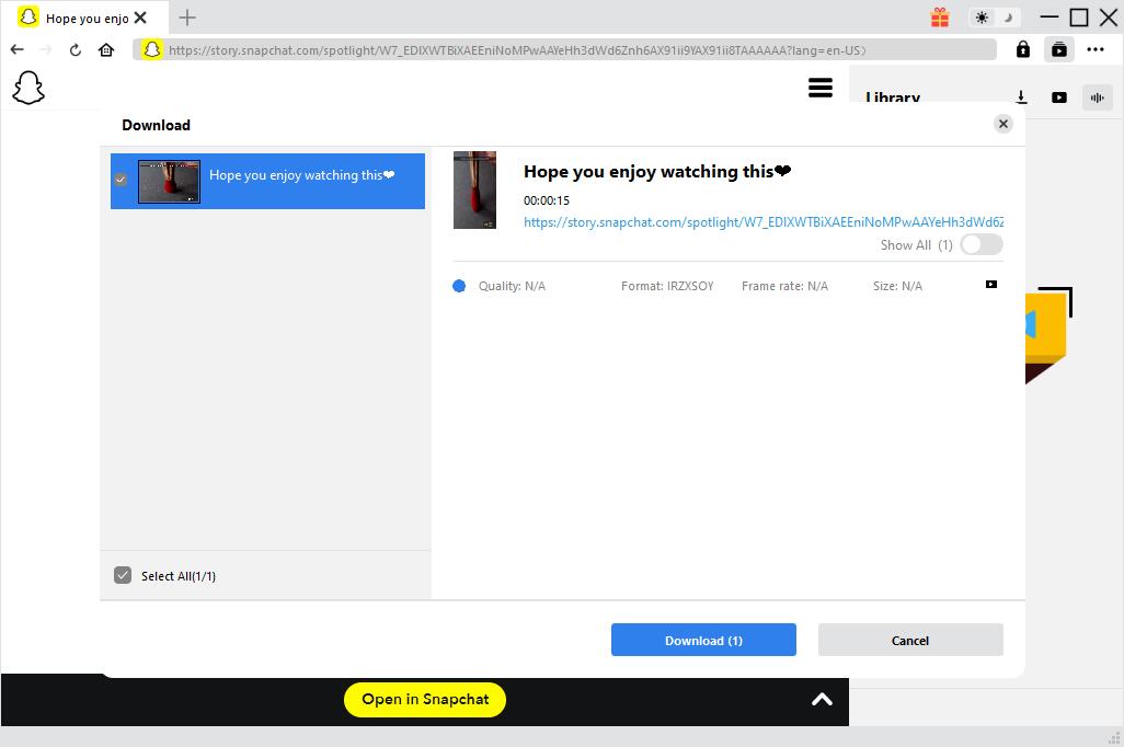 Copy the link of the Snapchat video you want to download and paste it to the address bar, then press Enter on your keyboard. CleverGet will detect available sources to download automatically and list all downloadable videos in different formats, sizes and resolutions on the pop-up Download panel. Select the option you want and then click Download button to start downloading the Snapchat video.