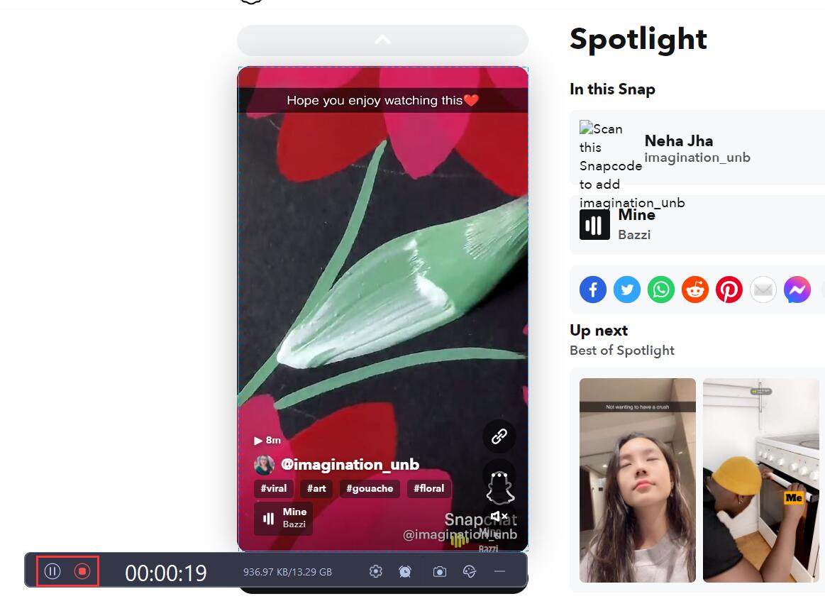 Click the “Record” button to start recording Snapchat video. During the recording process, you can temporarily stop the process and restart the process.
