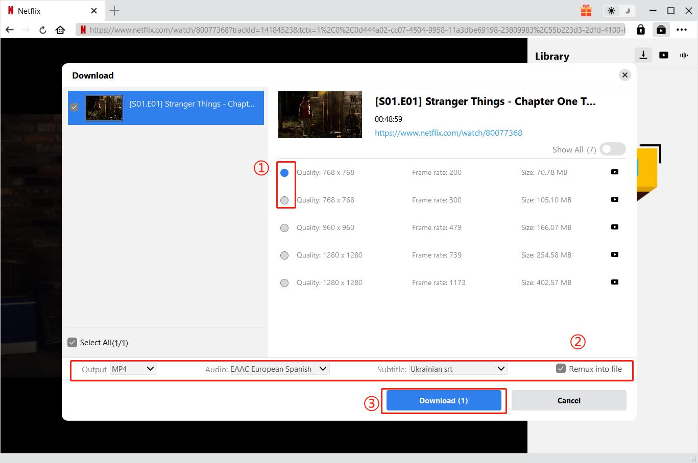 On the playback page of this Netflix video, CleverGet Netflix Downloader will parse all the information of this video. Then, you can view this information in a small window. You can select the subtitles, audio and other information of the Netflix video you want to download in this window, then uncheck the “Remux into File” option and click the “Download” button, and CleverGet Netflix Downloader will download the Netflix video and subtitles separately.