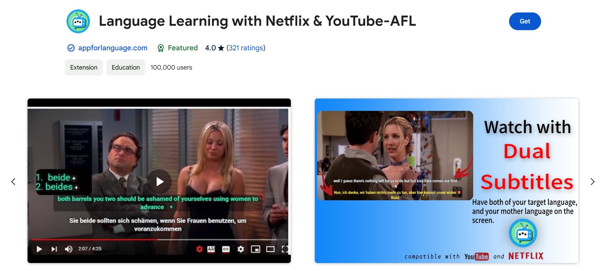 If you use Google Chrome, you can also use Netflix Google Chrome Extension to download Netflix subtitles. Currently, there are many plug-ins on Google Chrome that can provide Netflix subtitles download services, such as Language Learning with Netflix & YouTube-AFL. After installing it on your Google Chrome, play Netflix videos online. Then, click on this extension and choose to download Netflix subtitles. This plug-in will automatically identify the subtitles in the Netflix video being played and download the subtitles.