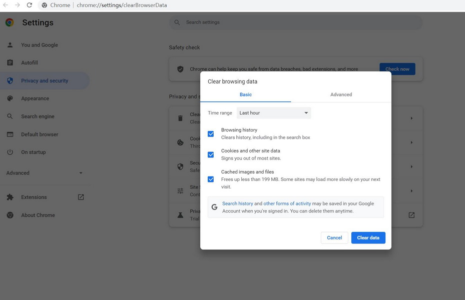It is known to all that a large amount of cache in your browser slows down its performance and results in YouTube loading slow. To get rid of this, you’d better clear your browser cache every once in a while. Clearing browsing cache can quicken up YouTube loading speed. To clear the Google Chrome browsing cache, for instance, you can follow the steps below.