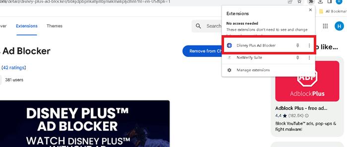 Add-ons for Google Chrome are another simple way to skip Disney Plus ads. Adding the right app, like Disney Plus Ad Blocker for Google Chrome, will help you watch better by blocking annoying ads.