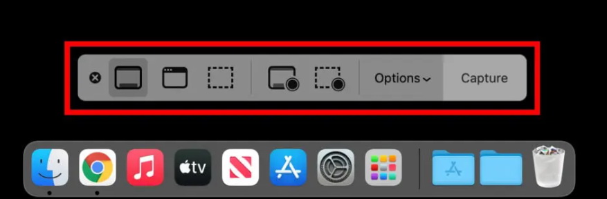Press Command + Shift + 5, and the screenshot toolbar will appear at the bottom of the screen. It offers options to capture the entire screen, a selected portion, or a specific window, and it also includes a new screen recording feature. More importantly, you can set the save location for screenshots here and enable timed screenshots. Clicking Options also allows you to show or hide the mouse pointer, among other things.