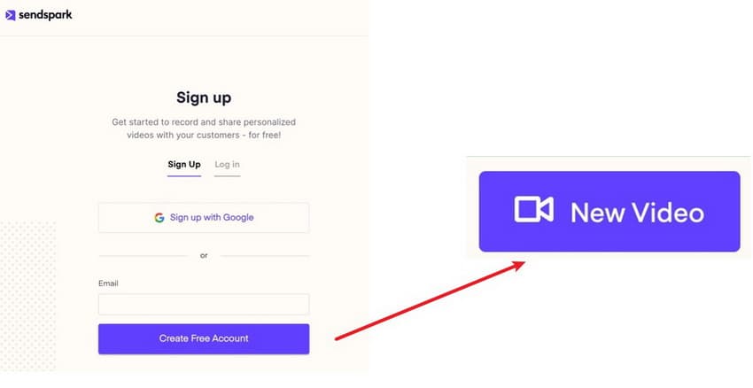 Add the Sendspark extension to your Chrome web browser and then open it. Here you can create a free account, then log in using your credentials. After that, you can click “New Video” in the top right corner of the interface.