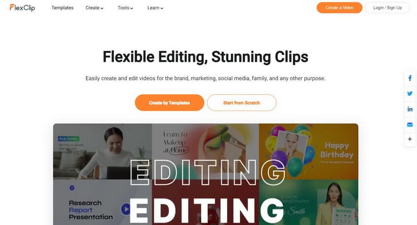 FlexClip is applied to turn video into link, which enables you to directly share your videos via a short link. The design of this video to link generator is simple and clear. What’s more, this tool also allows you to edit your video to achieve any look you desire to gain. The editing tools packed with it are powerful and various, which is helpful when you desire to edit and improve your video quality.