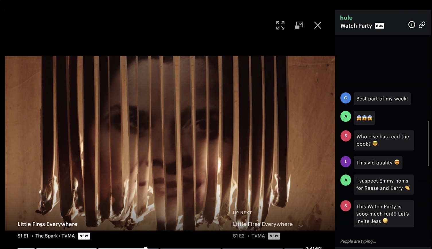 A Hulu Watch Party allows up to 8 members to watch Hulu movies/shows simultaneously, who are over 18 years old and using supported browser. Thousands of on-demand movies and shows from Hulu’s streaming library are available with Hulu Watch Party. To see if a title is available, visit the movie or show Details page on Hulu.com and look for whether there is the Watch Party icon.