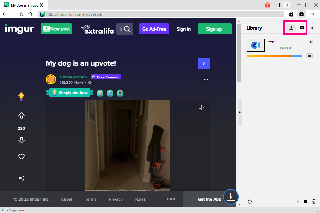 After setting download directory, within CleverGet, open imgur.com website and then play back back the target video you want to download. You could see that CleverGet is automatically parsing the target Imgur video URL for you.