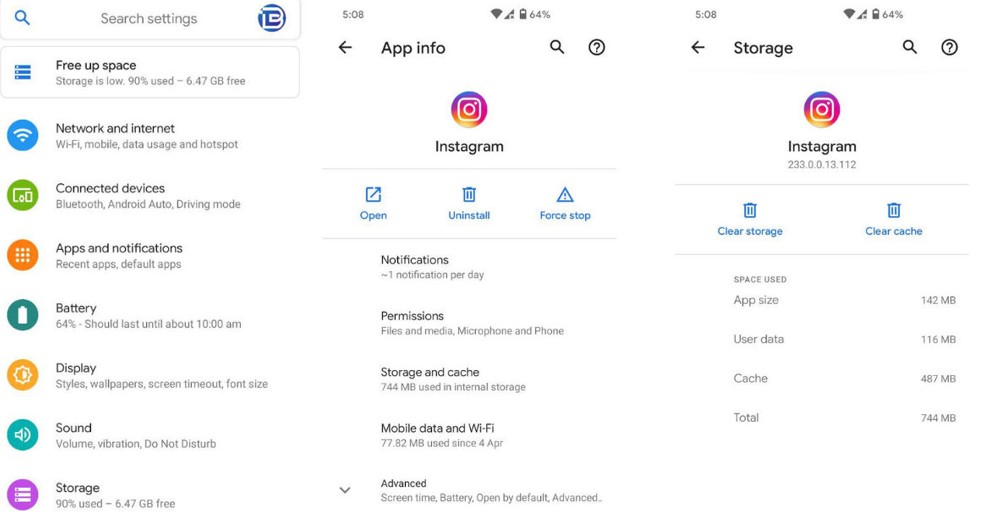 Clearing caches and cookies may also be able to fix the issue of Instagram couldn’t refresh feed. The steps are quite simple. For Android users, you just need to go to “Settings > Apps” to find the Instagram app to click on. Then you can hit on “Storage > Clear Cache”. If you have an iPhone, the only way to clear Instagram’s cache and cookies is to reinstall the application. You need to note that you will need to log in again after clearing the cache as it will remove all the saved files stored on your device by Instagram app.