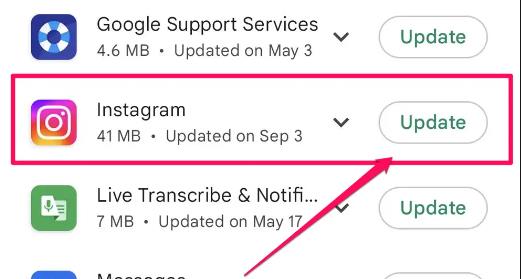 • Step 2: If there’s a newer version of Instagram available, you’ll see the “Update” button on the right.