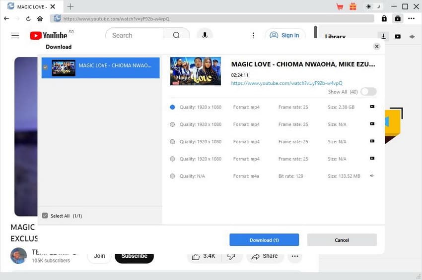 In the Download panel, you can see all options listed in different formats, quality, size, etc. Choose your desired download option and click the “Download” button to start downloading movies from LookMovie alternatives.