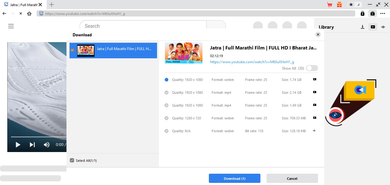 Once the movie starts playing, CleverGet video downloader will also give you options to choose the quality of the movie. Select one or more option, and then click the “Download” button to download Marathi movies.