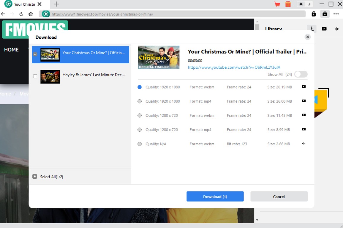 The downloadable video sources would be listed in the pop-out window. Click the Download button on the desired video source to download the video.